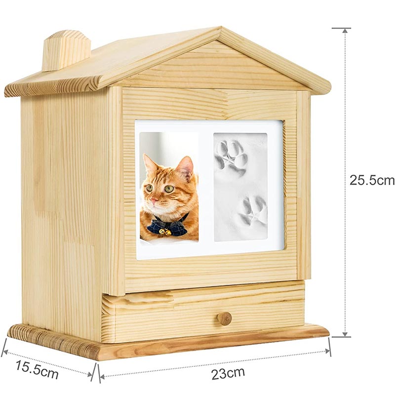 Urna din lemn cu argilă de imprimare cu cadru pentru a comemora moartea animalelor de companie este un produs memorial cald și delicat, condensat sentimentul profund și perseverența animalelor de companie. În primul rând, această urnă din lemn de petină de pin cu cadru de imagine este confecționată din lemn natural de înaltă calitate. Textura naturală și textura caldă a lemnului nu numai că îi conferă o frumusețe unică, dar aduc și o atmosferă caldă și intimă. Fiecare detaliu a fost lustruit cu atenție pentru a arăta eleganță și calitate.